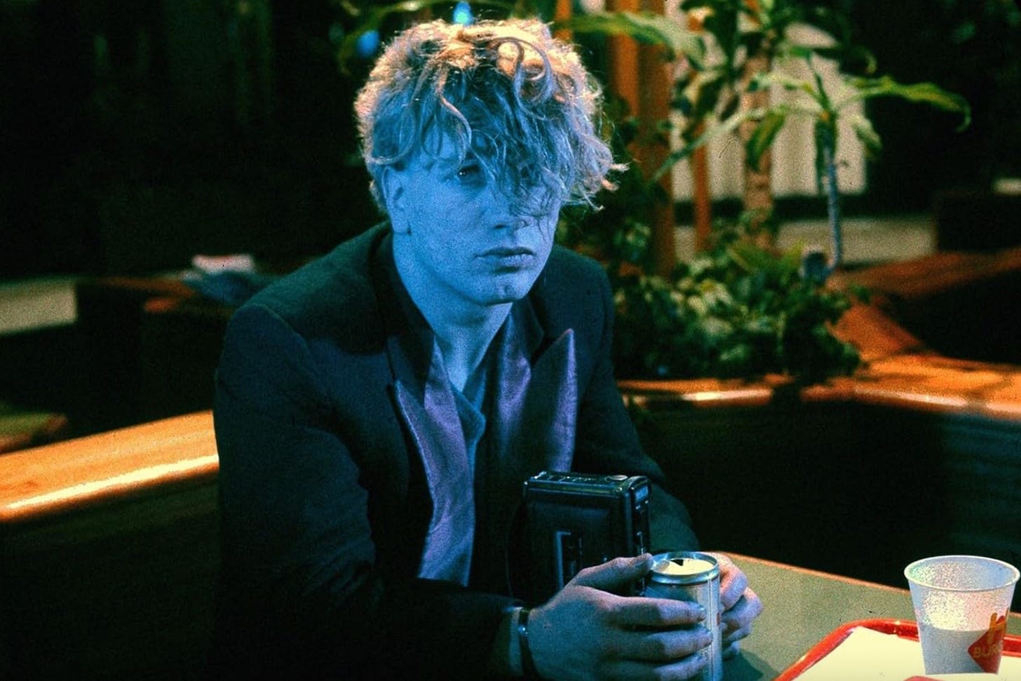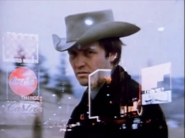 Although Liquid Sky has many similarities to Burroughs’ writing and aesthetics, Slava Tsukerman and Anne Carlisle have never discussed him as an influence (let me know if there is a source that says otherwise). In contrast, the West German movie Decoder not only cites the writer as an influence, but features him in one scene. Decoder tells the story of FM (Einstürzende Neubauten’s FM Einheit), an industrial noise artist who discovers that the muzak at fastfood chain H-Burger is pacifying its patrons into submission. He joins a strange cult-like group who aims to overthrow corporate muzak companies, fastfood culture, and apparently the government by using handheld tape recorders loaded with riot sounds in order to produce riots. As all of this is going on, FM engages in a subplot having to do with his frog-loving sex worker girlfriend Christiana (Christiane Felscherinow), who is being stalked by Jäger (Bill Rice), a creepy older spy. Jack Sargeant writes, “Decoder presents a uniquely political interpretation of Burroughs’ work and--via the use of Burroughs in the film’s dream sequences--directly attributes the narrative’s central concerns to Burroughs’ tape recorder experiments.” (200) It was not necessarily the author’s fiction that compelled the makers of the movie, but his 1970 essay “The Electronic Revolution” that specifically posits a collective mass of recorded sound as a protest tool. Decoder is a fascinating piece of protest cinema, in that it is a fictional test run for how this kind of resistance would play out. All this occurs among various aurally and visually jarring sequences that show a half-real sci fi underground of Berlin in the early 1980s.